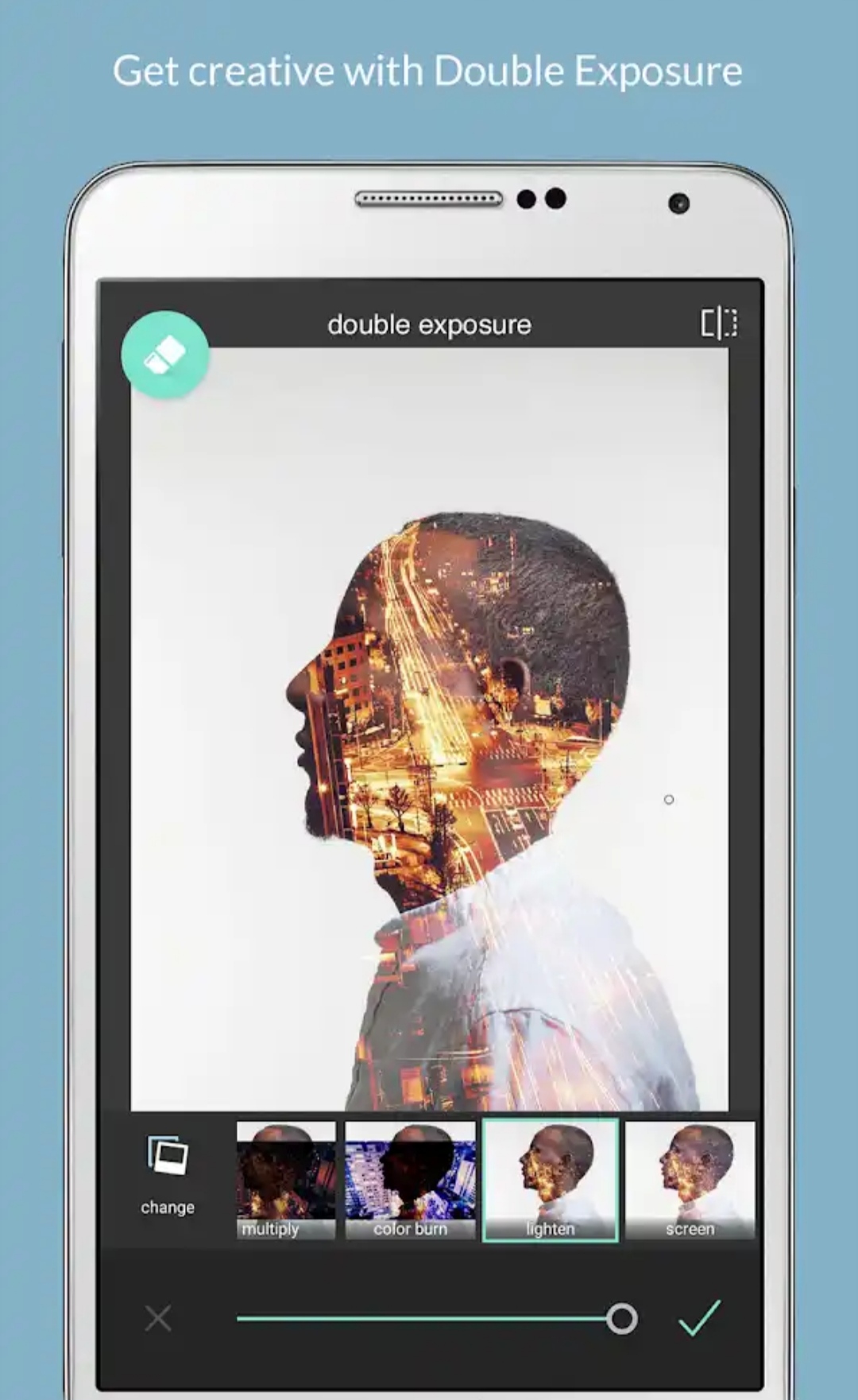 ▪️Yers use double exposure to create arrays of effects easily with layers and adjustable transparency.